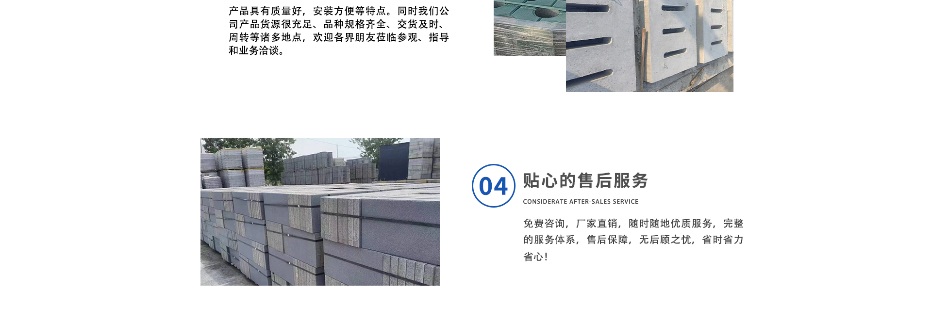 公司擁有一支專業且富有創新精神的團隊。在產品布局上,極為豐富多元。專注于PC仿石材道板磚和井字磚的生產,其PC仿石材系列產品,逼真還原天然石材質感,兼具美觀與實用,廣泛應用于市政道路景觀、商業廣場及高端住宅小區的地面鋪設。